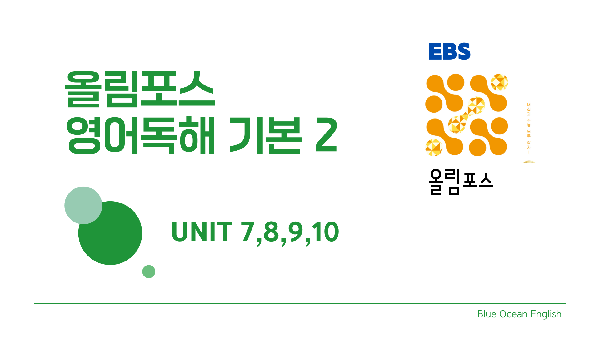 올림포스 영어독해 기본 2 (Unit 7-10) #올림포스 영어독해 기본 2 #올림포스 영어독해 #EBS 구문독해 #올림포스 독해 #영어독해 기본 2025년 내신 대비 개정판 올림포스 영어독해 기본 2 Chapter 2 Unit 7 학술문 내용 불일치 Chapter 3 Unit 8 어법 정확성 Chapter 3 Unit 9 어휘 적절성 Chapter 4 Unit 10 단어 빈칸 추론 서술형 시험 대비 핵심 문장만 선별하여 암기 시켜드립니다 https://youtu.be/Bjbop-tj9_s 블루오션 유튜브 2025.06.11